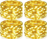 4 Pack 50 LED Warm White-Copper Wire Lights with Timer Battery